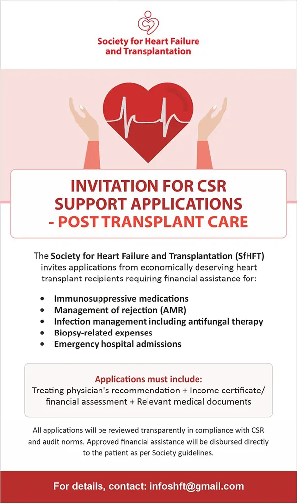 The Society for Heart and Lung Failure and Transplantation (SHLFT) invites applications from economically deserving heart and lung transplant recipients requiring financial assistance for the following.